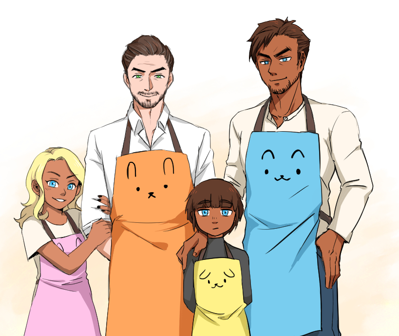「好啊。」唐納熱情的湊過去,教室提供的圍裙是那種偏可愛的種,穿在兩位大叔上雖然有點不倫不類,但奧莉安菈似乎很高興的樣子,「柯西莫,你要不要一起拍?」