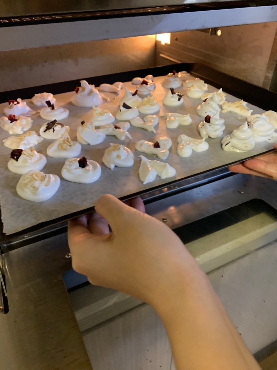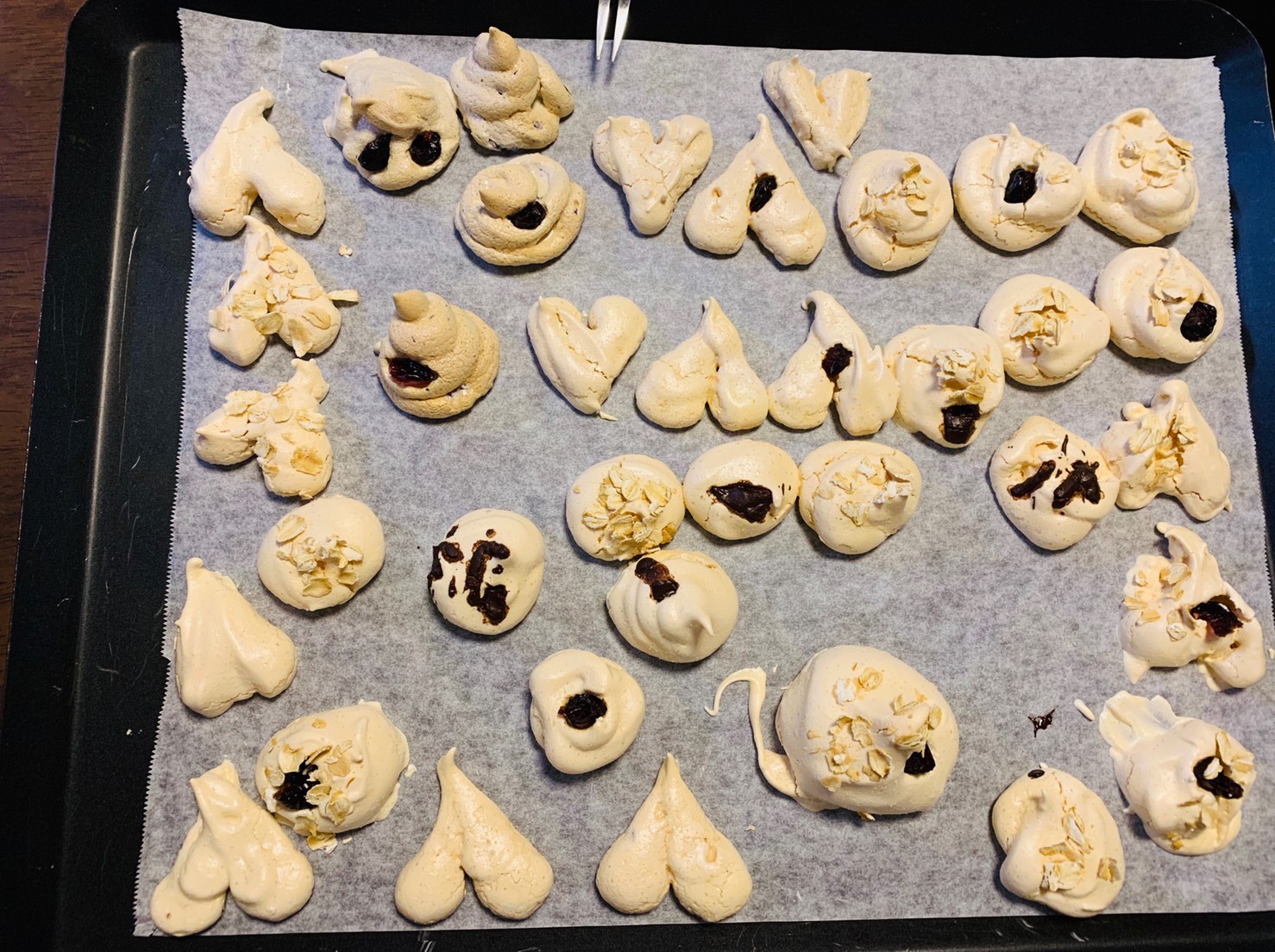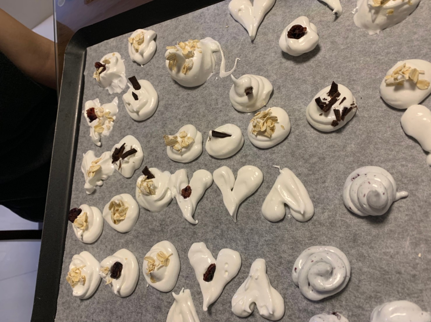 不過當打發的蛋白擠在烤盤上畫面還是很療癒的