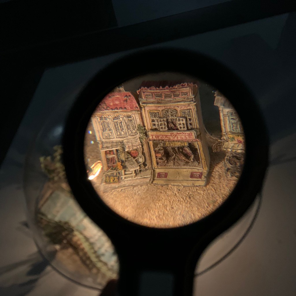 紙雕呈現的是馬來西亞的街景或者是作者所看到的生活樣貌,看似薄薄的紙雕我卻覺得充滿了生命力,彷彿在這透明罩子裡的作品是真的世界,裡面的小人物正熱鬧的在裏頭走動。