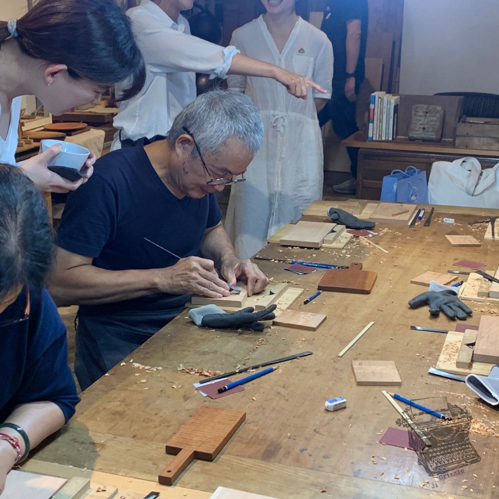 師傅一開始先做工具的基本介紹,然後給了一小片木材讓我們體驗怎麼下刀,手感大概是怎麼樣子,然後才真的讓我們進入體驗課程