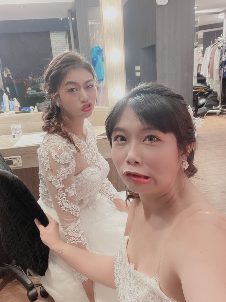 翡麗在規劃流程方面設想的很周到,第一天去簽約後,他們分別會問說有沒有預計什麼時間拍攝,因為要安排攝影師跟化妝師,等敲定了拍攝時間,再來就是安排挑婚紗的時間,以及與攝影師溝通的時間,與攝影師溝通能快速了解對方的作品風格也為了避免拍出來的成品跟自己想要的不一樣,以閨蜜婚紗來說,我覺得這是很細心的服務。