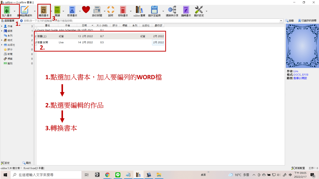 按下確定鍵後,會回到主頁面,點選「編輯書本」,開啟的就會是下方圖片的樣子,電子書就成功轉成直式排版啦