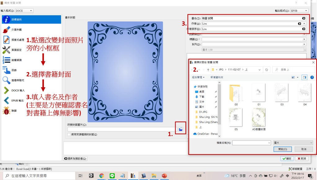 設定好封面,接下來便是設訂介面以及電子書直式的格式