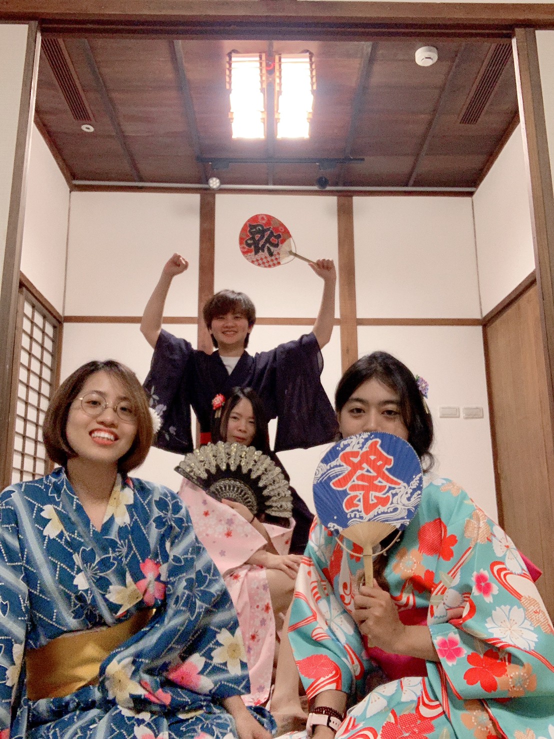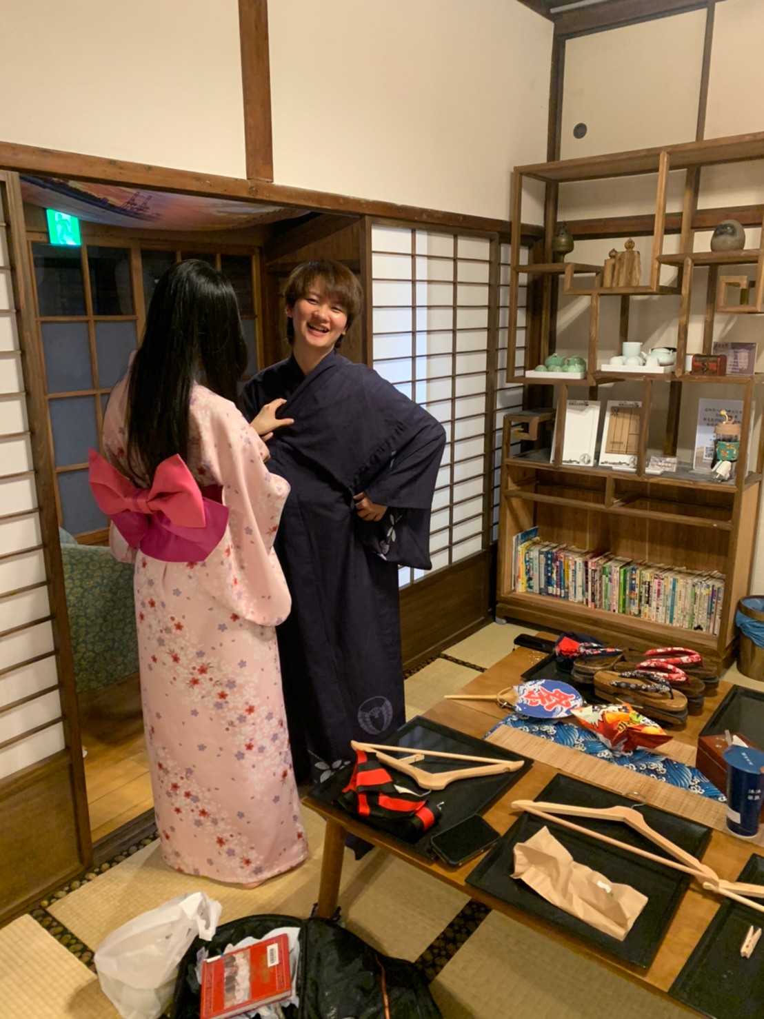 起初大家都以為我在說,結果看到我洗完澡出來後真的很認真在穿浴衣,然後我看著第一個洗完澡的小夥伴,拿起她挑選的款式,笑的那叫一個燦爛:我幫你穿!