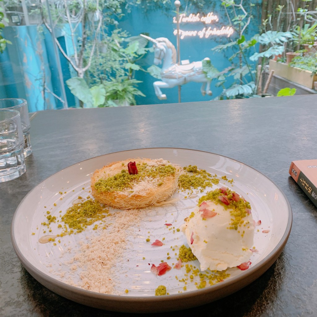 ‧薄果仁酥餅是土耳其的傳統甜食,與庫內費不同是,將細麵改為薄餅,但不知為何吃起來卻比庫內費甜上不少,嗯……又或者陪同的小夥伴本身就對甜食特別不行(欸